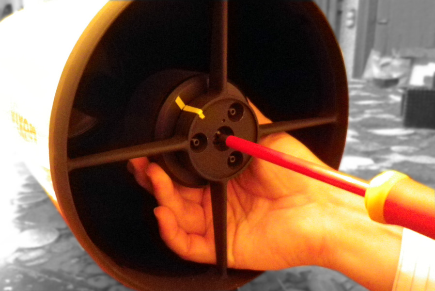Tercera nota importante: los tornillos de colimación trabajan en parejas. Uno empuja la superficie y el otro la acerca. Para apretar/tensar uno, primero hay que aflojar el otro.