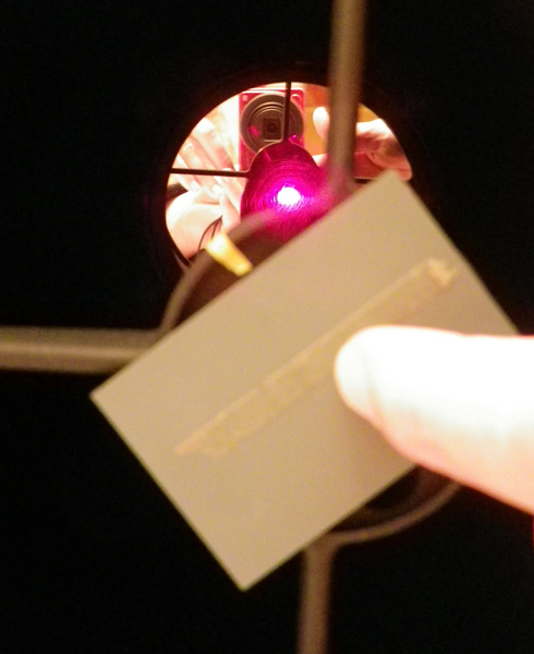 Antes de comenzar, recuerde que el haz del laser NUNCA debe dirigirse a los ojos, puesto que el daño en la retina podría ser permanente. Lea las instrucciones de su colimador y tómese las advertencias indicadas muy en serio. Dependiendo del modelo y potencia del laser, una fracción de segundo podría ser suficiente para dañar la retina para siempre.