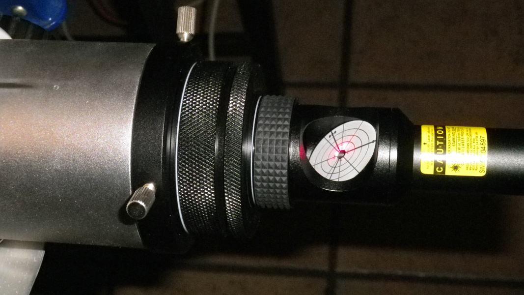 Ahora la estrella artificial ya está perfectamente alineada con el eje geométrico del enfocador. Este es un paso de preparación para la posterior colimación del primario.